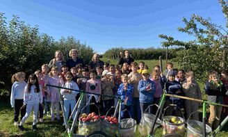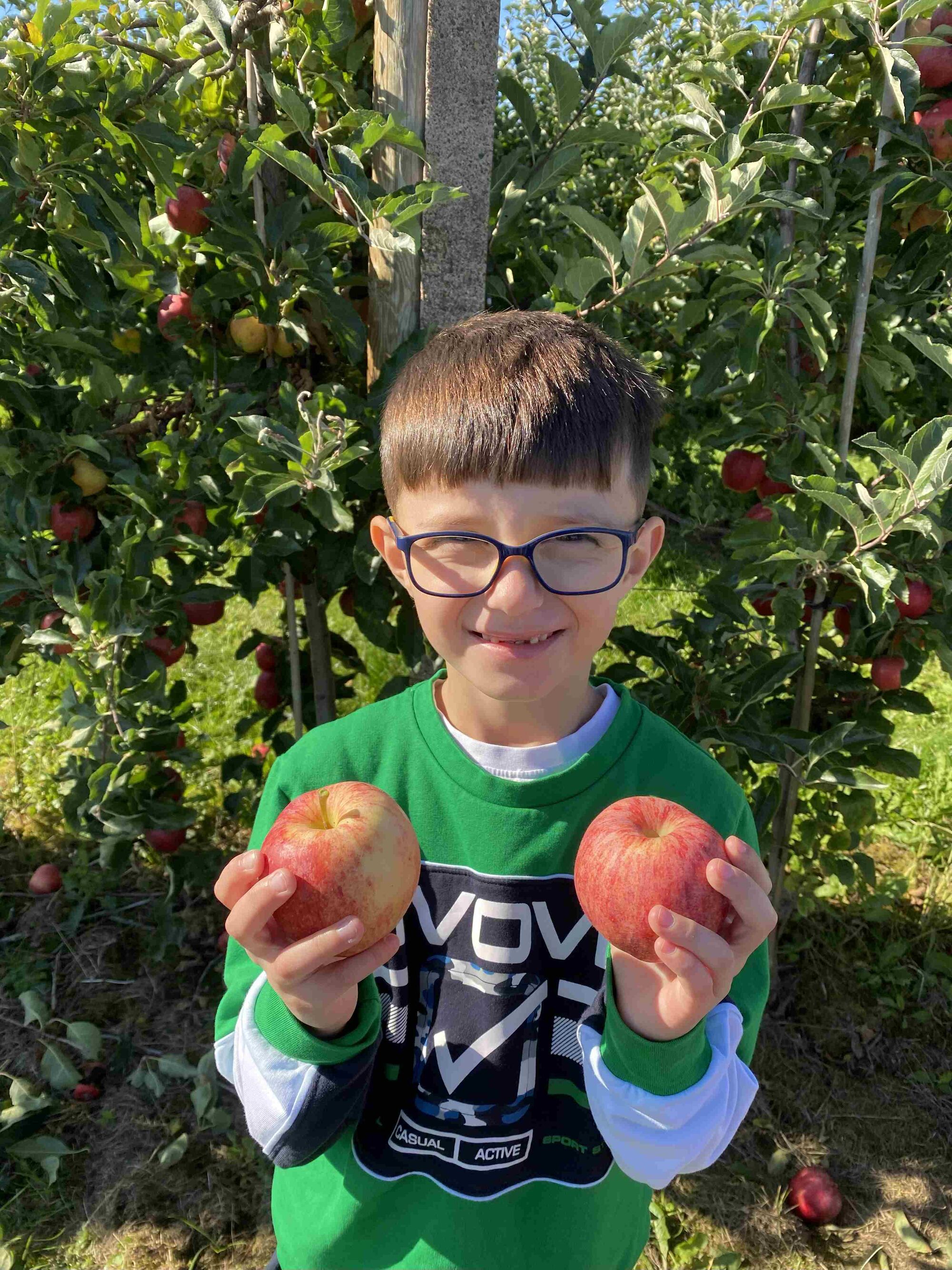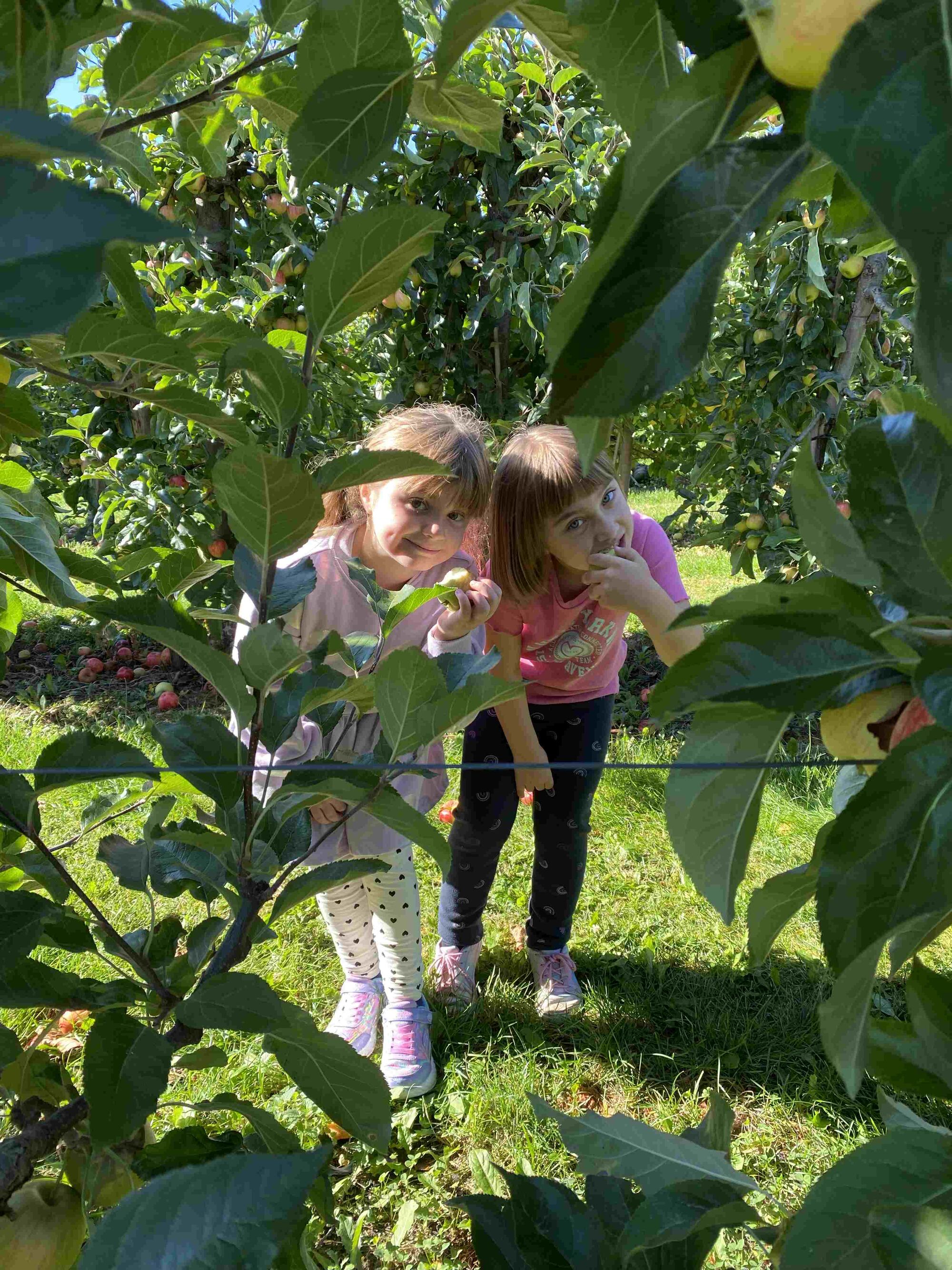 In der letzten Schulwoche vor den Ferien widmete sich die Klassenstufe 1 dem Thema Apfel. Auftakt dieser besonderen Projektwoche war die Wanderung zur Apfelplantage in Sobrigau. Die gepflückten Äpfel wurden in den darauffolgenden Tagen mit allen Sinnen erforscht: Wir bestimmten die Teile eines Apfels, fertigten erste Sachzeichnungen an und verarbeiteten einen Großteil der Ausbeute zu süßem Saft. Am Ende der Woche durfte jedes Kind seinen eigenen, hübsch verzierten Schokoapfel mit nach Hause nehmen. Auf den folgenden Seiten gewinnen Sie einen kleinen Einblick zu diesen stimmungsvollen Tagen.