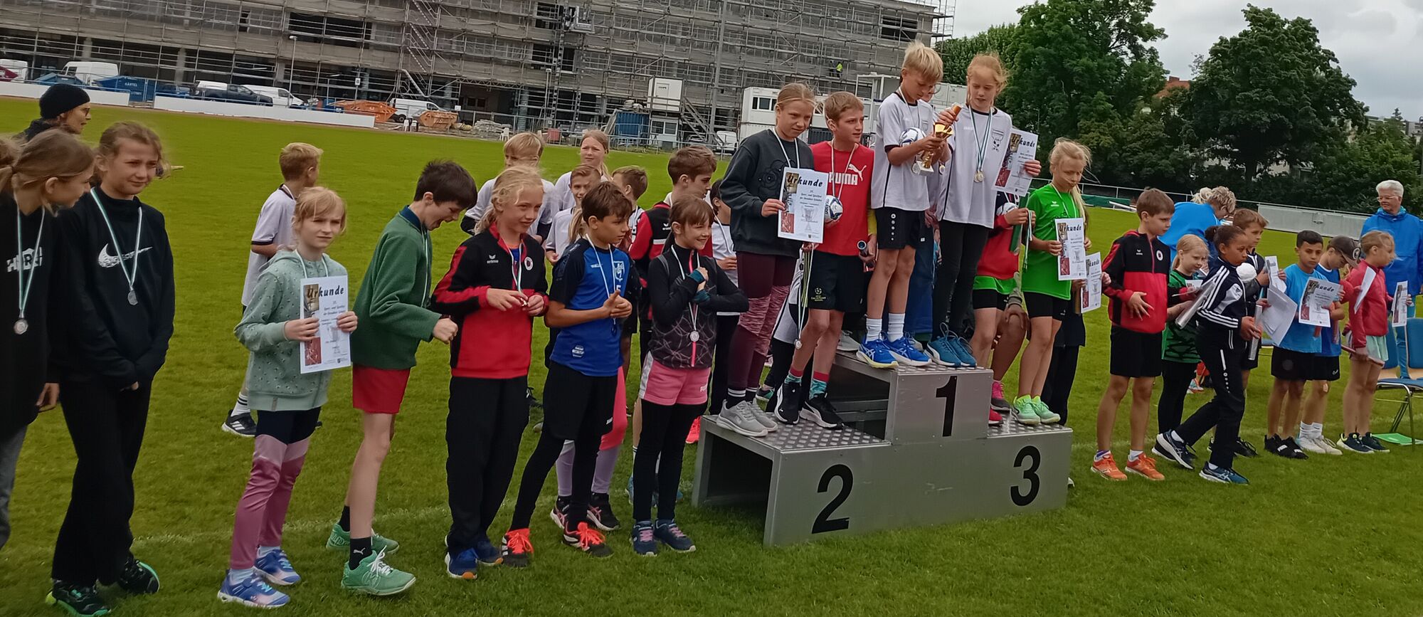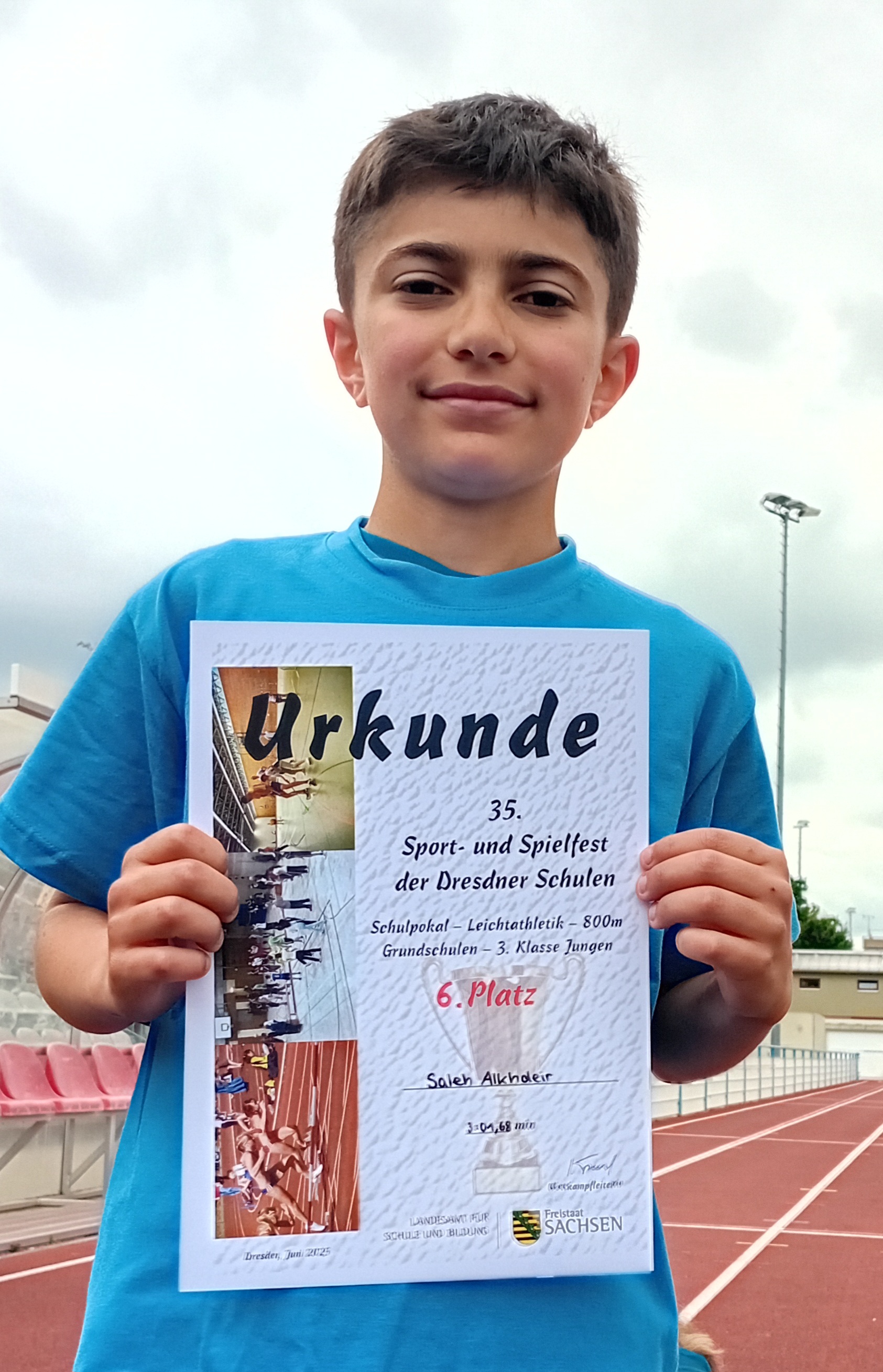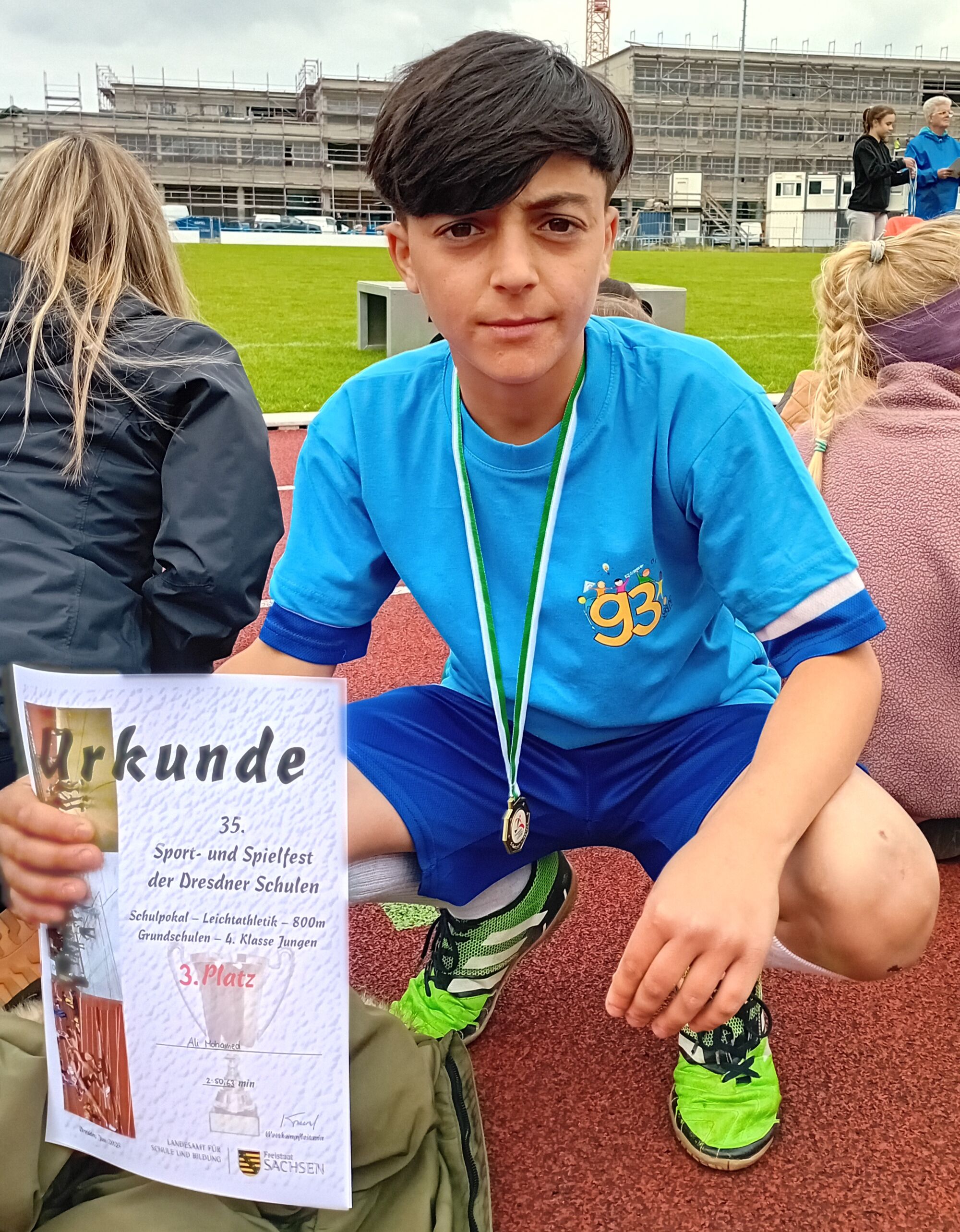 Beim diesjährigen Schulpokal Leichtathletik, der im Stadion an der Bodenbacher Straße durchgeführt wurde, zeigten die 12 ausgewählten Schülerinnen und Schüler der 93. Grundschule aus den Klassen 3 und 4 vollen Einsatz. Trotz kühler Temperaturen gingen sie in den Disziplinen 50m Sprint, Weitsprung, Wurf, Umkehrstaffel und 800m Lauf an den Start.