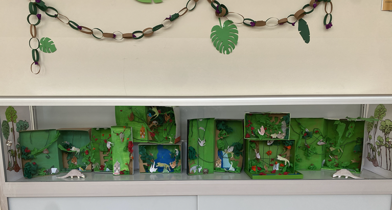 Im Januar und Februar tauchten die vierten Klassen in das spannende Thema „Regenwald“ ein. Im Rahmen einer vielseitigen und anschaulichen Lernwerkstatt erforschten die Schülerinnen und Schüler eigenständig die Regenwälder unserer Erde. Sie entdeckten spannende Fakten über exotische Tiere und Pflanzen, lernten indigene Völker kennen und beschäftigten sich mit Möglichkeiten zum Schutz dieser einzigartigen Lebensräume.
