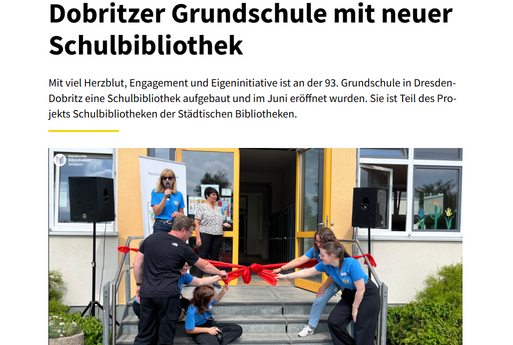 Unsere frisch modernisierte Schulbibliothek ist jetzt auch auf der Website der Städtischen Bibliotheken Dresden zu sehen. Schaut gerne vorbei und erfahrt mehr über den Umbau und die Neueröffnung.