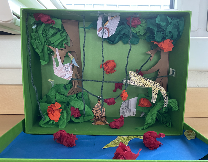 Im Januar und Februar tauchten die vierten Klassen in das spannende Thema „Regenwald“ ein. Im Rahmen einer vielseitigen und anschaulichen Lernwerkstatt erforschten die Schülerinnen und Schüler eigenständig die Regenwälder unserer Erde. Sie entdeckten spannende Fakten über exotische Tiere und Pflanzen, lernten indigene Völker kennen und beschäftigten sich mit Möglichkeiten zum Schutz dieser einzigartigen Lebensräume.