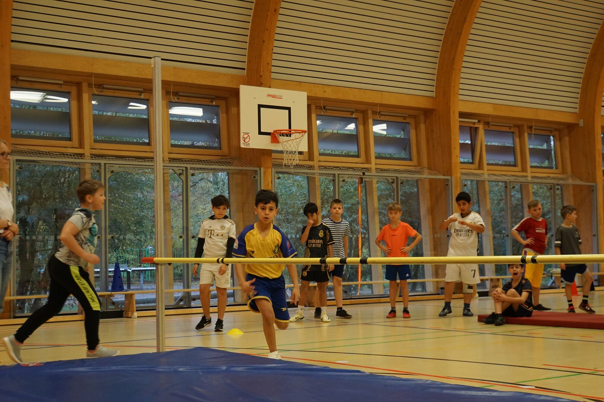 Anschließend ging es hoch hinaus! Alle Schülerinnen und Schüler konnten zeigen, wie gut sie die Technik beim Hochsprung beherrschen (Schersprung). Die Stimmung in der Halle war wirklich spitze. Die begleitende Musik motivierte zusätzlich. Alle Kinder feuerten sich gegenseitig an und wir erlebten einen fairen und sehr spannenden Wettkampf. Am Ende kam es zu einem Finale unter den Besten der Besten. Abgerundet wurde der Wettkampf mit einer Siegerehrung. Hier wurden die Sieger und Platzierten mit Medaillen belohnt. Alle Schüler und Schülerinnen erhielten eine Urkunde als Erinnerung. Es war ein super Tag! Eine Wiederholung folgt sicher nächstes Jahr.